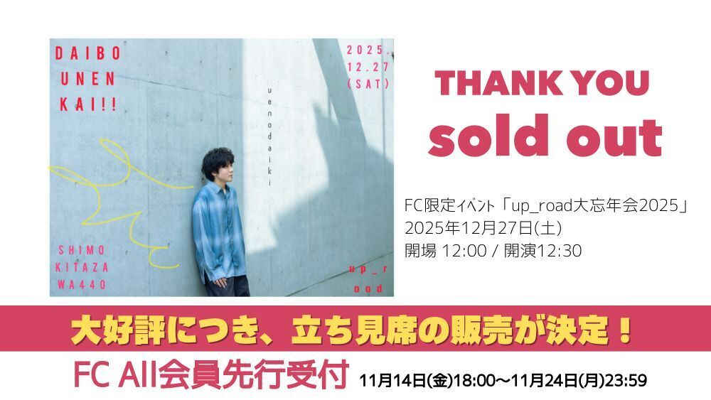 FC先行受付(ALL会員)開始!FC限定イベント「up_road大忘年会2025」